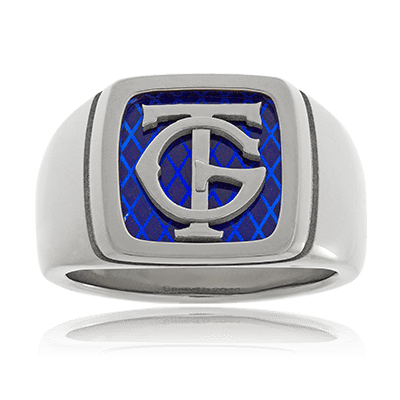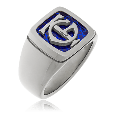 mit individuellem Monogramm auf blauen Grund.